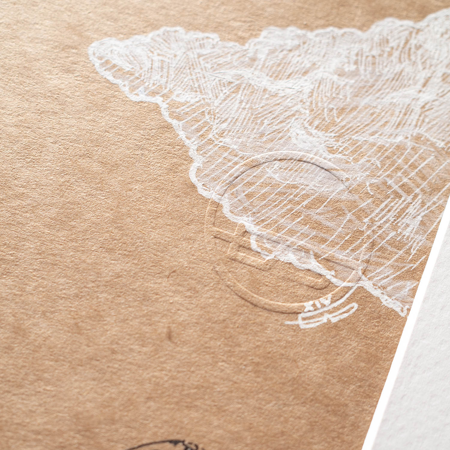 Seria „Niebo nad Śląskiem” wyróżnia się odbitkami na charakterystycznym papierze kraftowym, wzbogaconymi o białe, ręcznie rysowane chmury. Każda grafika jest jedyna w swoim rodzaju – układ chmur nigdy się nie powtarza, co sprawia, że każda praca jest niepowtarzalnym dziełem sztuki. Do każdej odbitki dołączony jest certyfikat autentyczności, potwierdzający jej wyjątkowość.