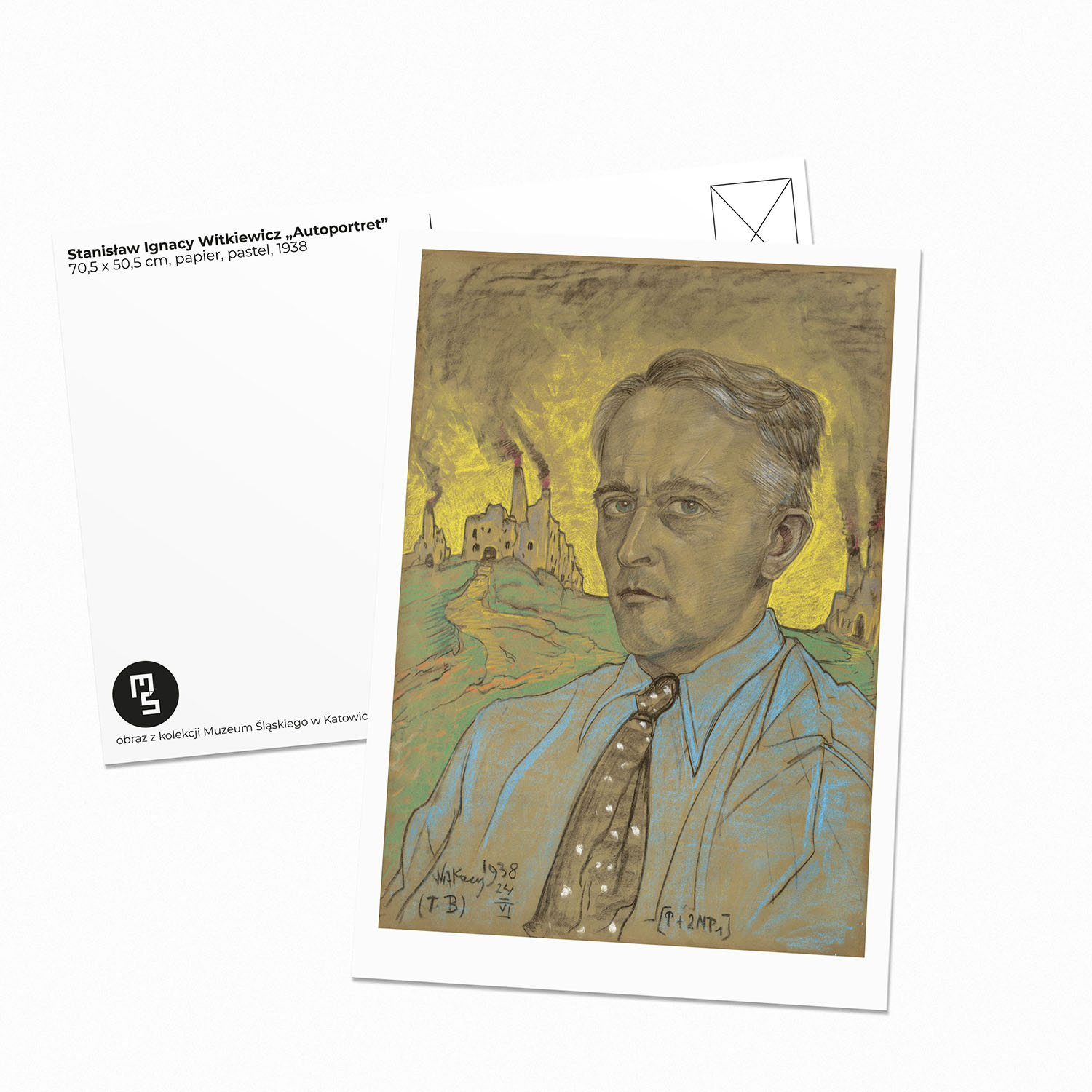 Poważna twarz Witkacego kontrastuje z dymiącymi zabudowaniami fabrycznymi na wzgórzu w tle, odczytywanymi jako symbol nadchodzącego kresu europejskiej cywilizacji, jako jedna z licznych w tej twórczości wizji katastroficznych, wypełnionych bezwolnością, absurdem i tragizmem doczesnego życia w ryzach utartych schematów społecznych oraz niszczących ambicji i systemów politycznych. Byłaby to zarazem wymowna wizualizacja wspomnienia okrutnych scen z pierwszej wojny światowej, w której Witkacy brał czynny udział, oraz przeczucia kolejnego wielkiego konfliktu zbrojnego. Obraz miał powstać podczas krótkiego pobytu artysty na Górnym Śląsku, w Katowicach, a więc najpewniej pod wrażeniem rozrosłego, przytłaczającego krajobrazu przemysłowego.